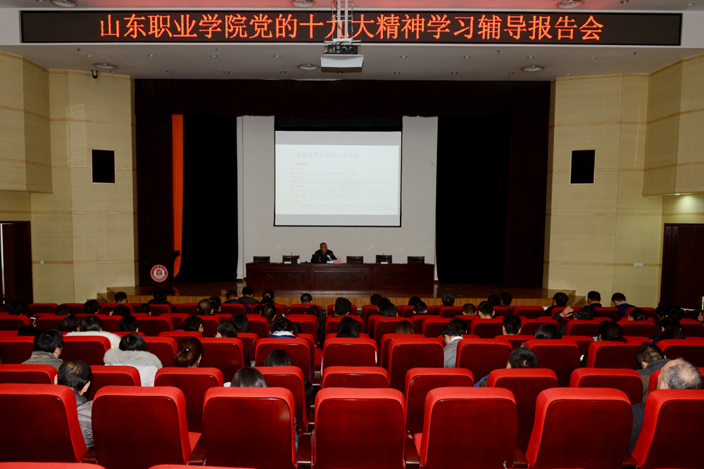 根據學院黨委關于學習宣傳貫徹黨的十九大精神的工作安排,12月21日,我院舉行黨的十九大精神學習輔導報告會,黨委委員、紀委書記祝介安為黨員干部師生作《新時代全面從嚴治黨新部署》輔導報告。報告會由黨委宣傳統戰部部長杜樹元主持。