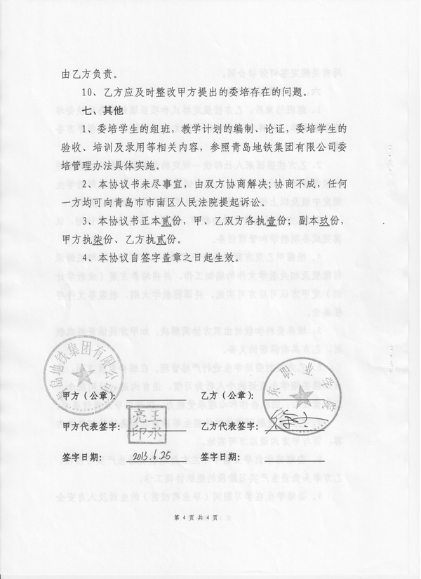 2013級青島地鐵集團有限公司(青島地鐵)訂單班