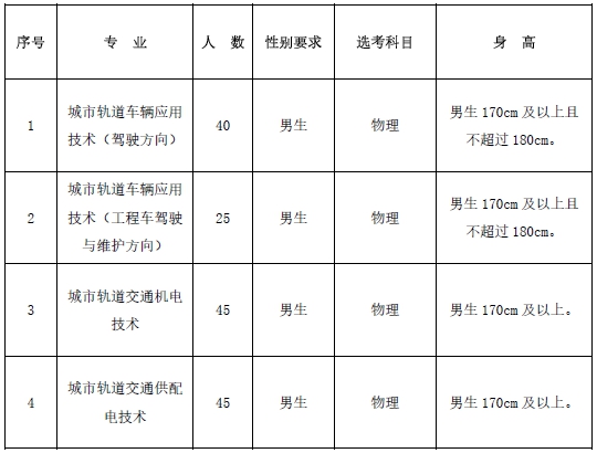 招收2023級高考成績達到省控大專分數線以上的河北省生源考生;城市軌道交通車輛技術專業(電力/內燃機車駕駛方向)矯正視力5.0及以上,其他專業矯正視力4.8及以上,辯色力正常均無色盲、色弱等情況;五官端正,無身體缺陷,無紋身,無口吃,普通話良好,符合《公務員錄用體檢通用標準(試行)》的要求。