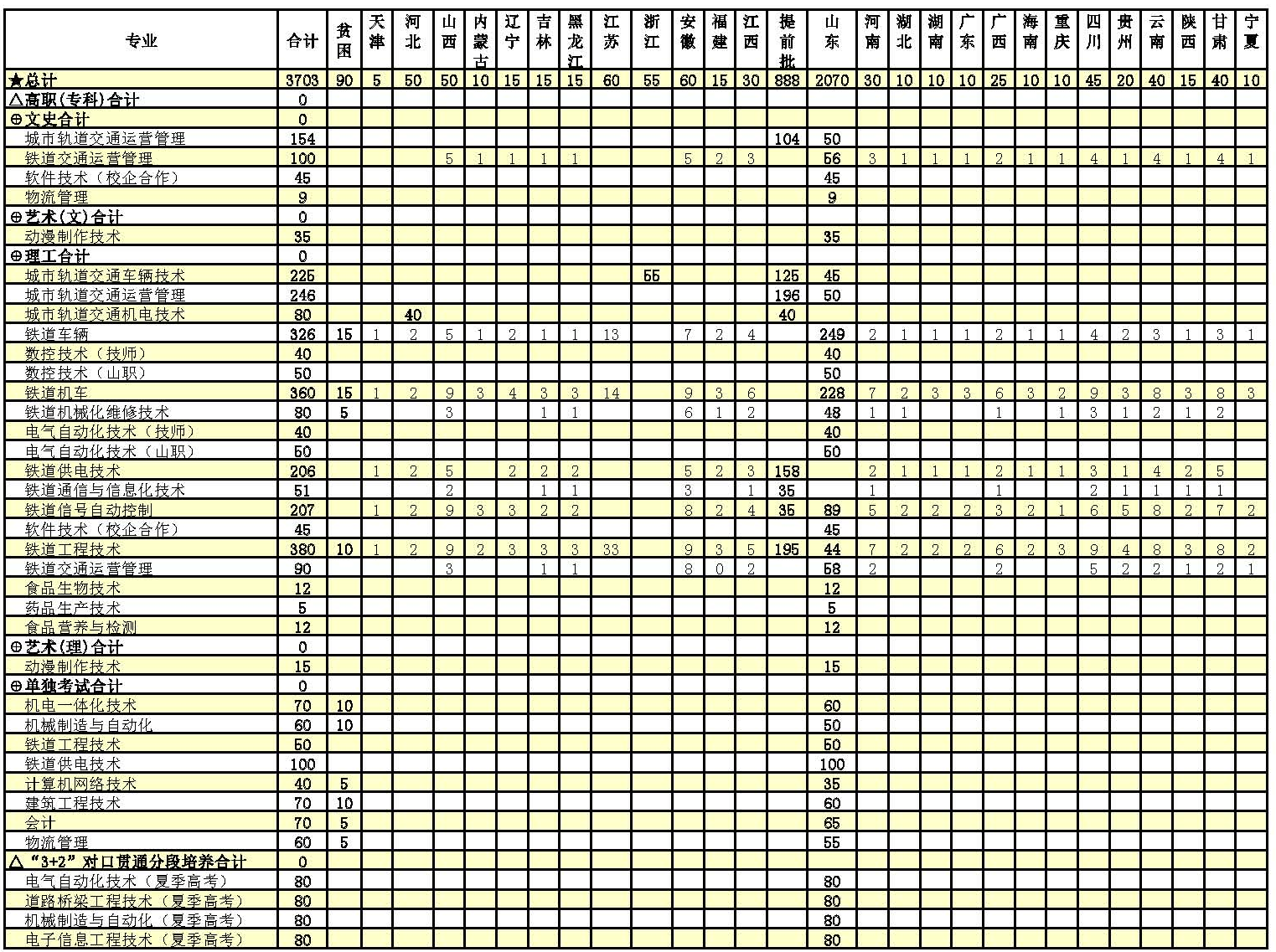 山東職業學院2017年招生計劃