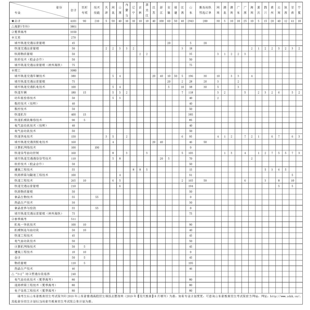 山東職業學院2019年招生計劃