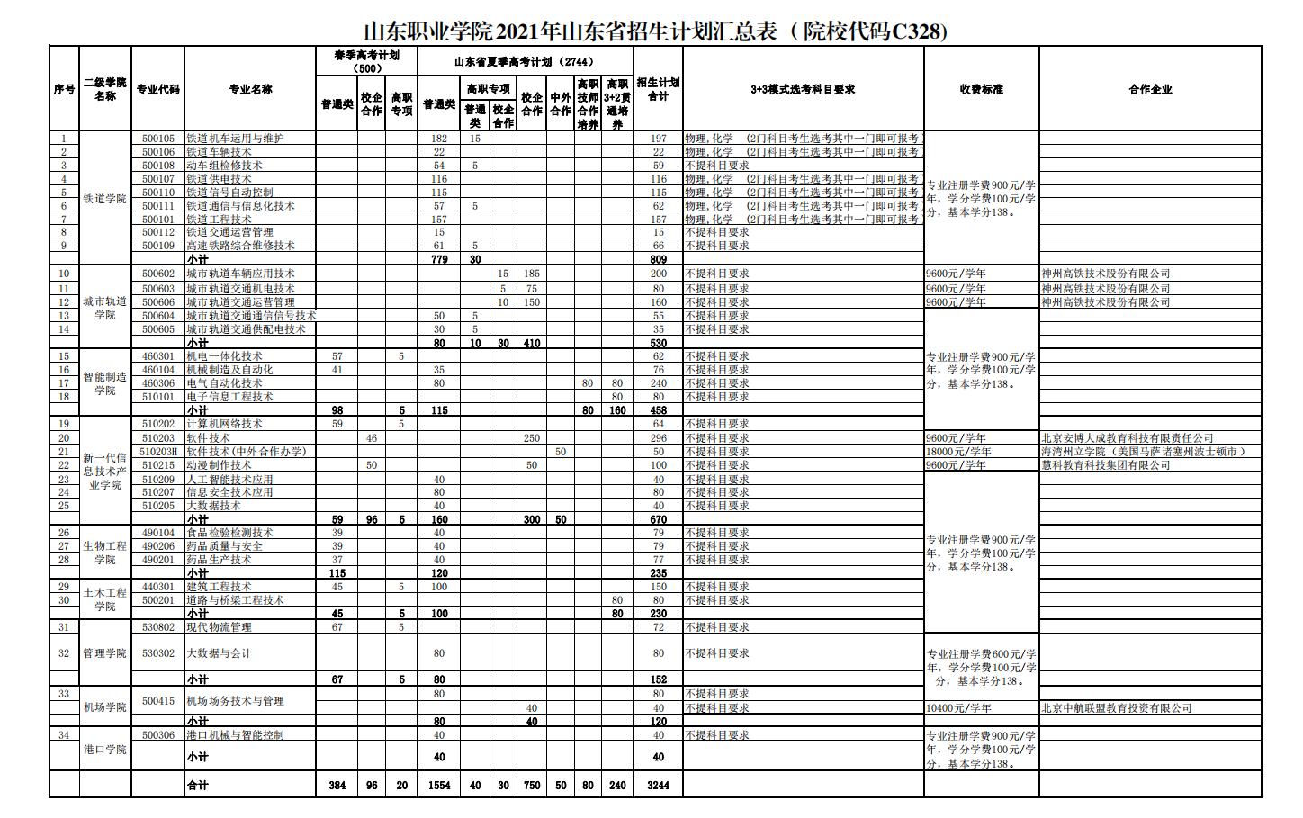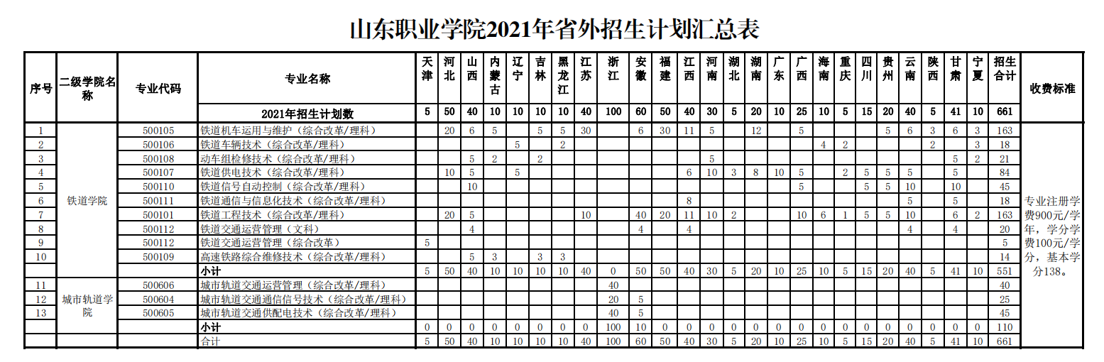 山東職業學院2021年招生計劃