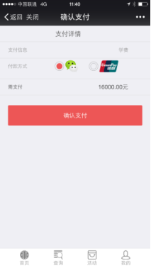 (四)登錄進考生本人收費頁面后,選擇繳費選項,點擊確認支付。